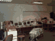 A row of monitors and a stack of keyboards